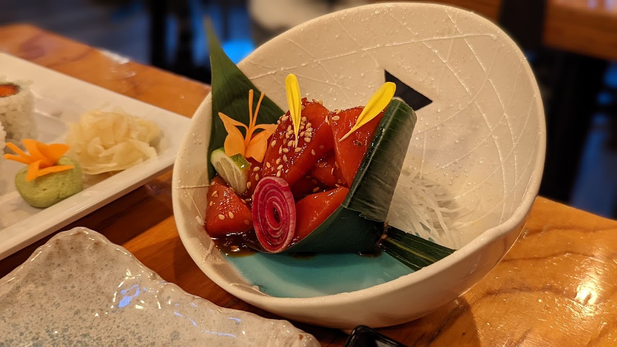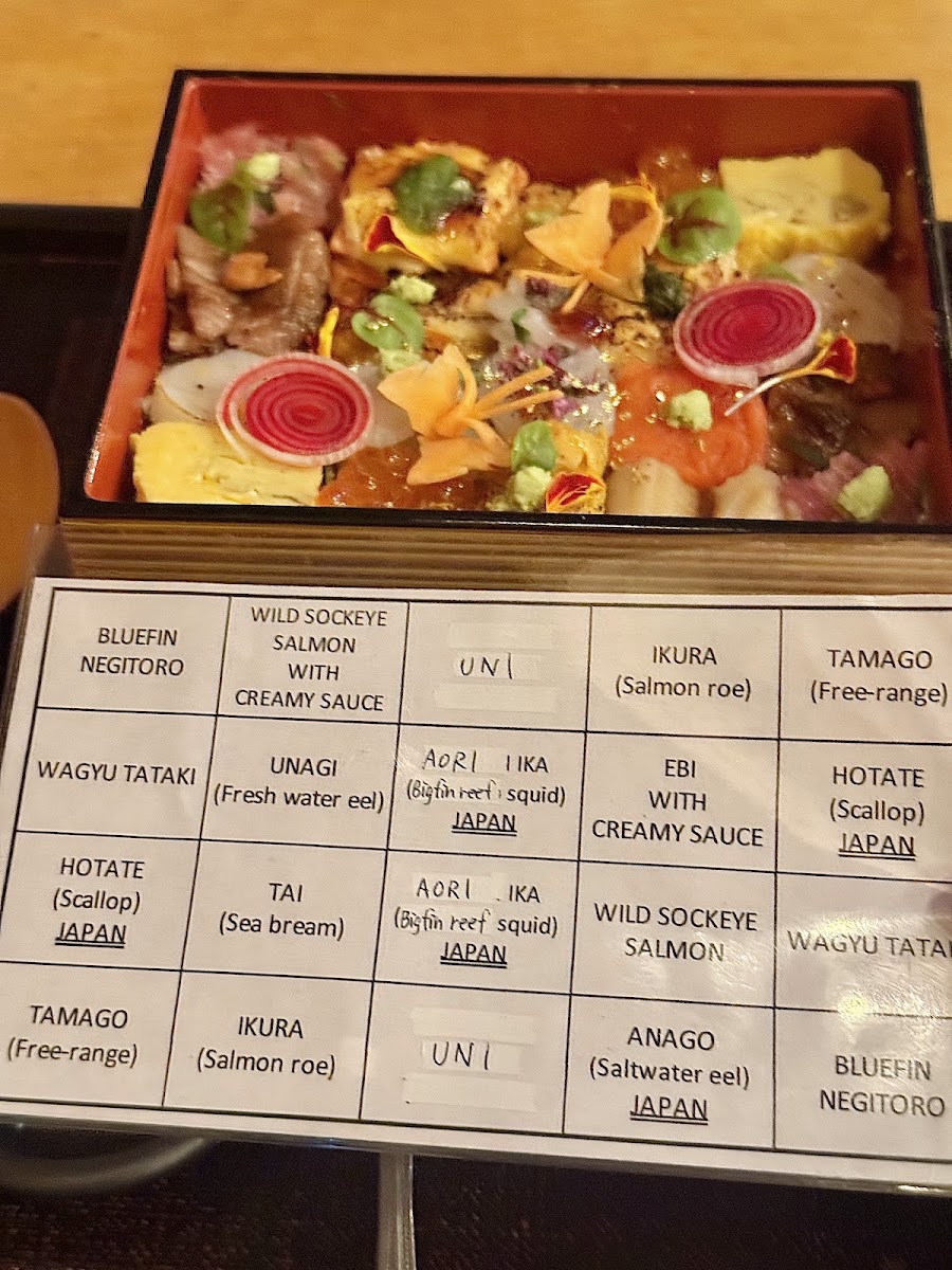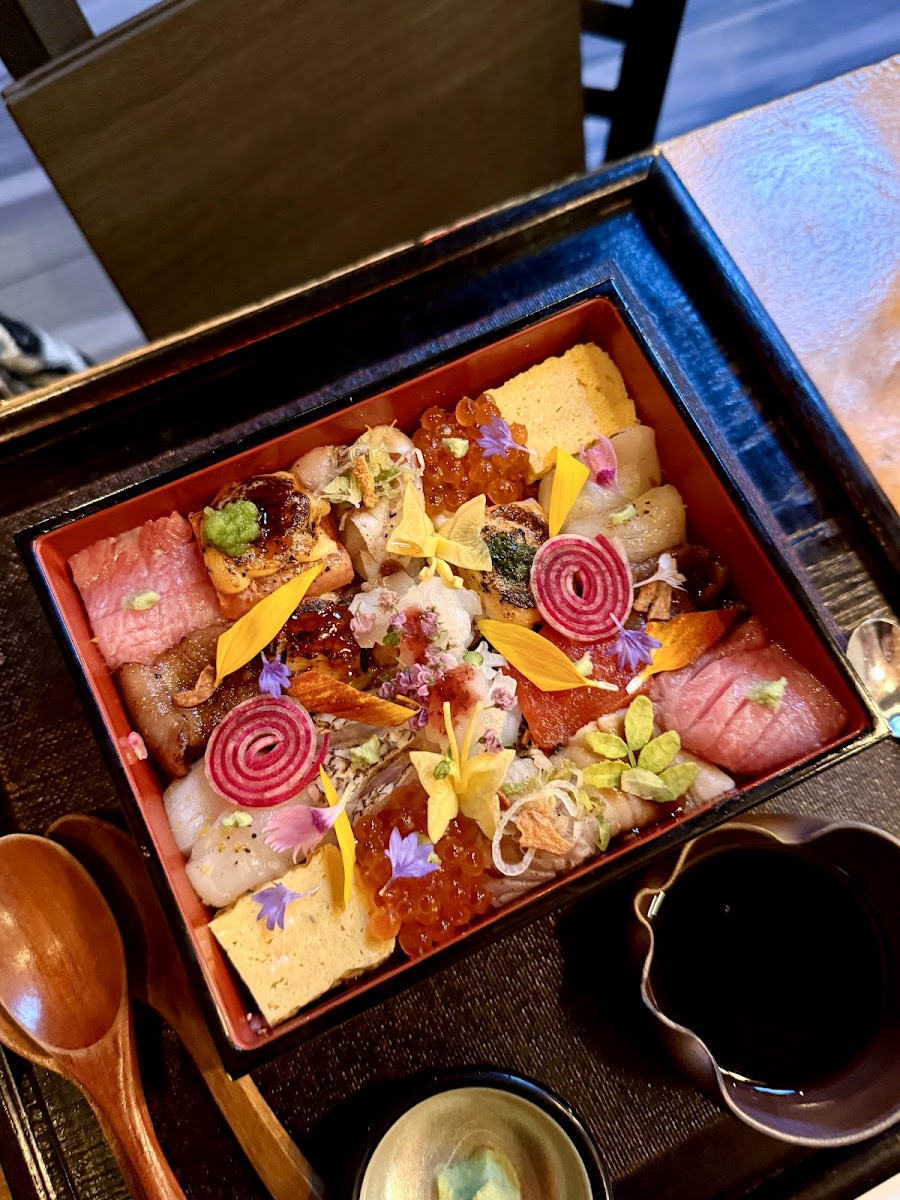 For those seeking something truly special, venture into the realm of artistic presentations with the Chirashi Donburi. This dish is a masterpiece in every sense, featuring an exquisite arrangement of bluefin tuna, wagyu beef, and salmon atop perfectly seasoned sushi rice, creating a delightful explosion of flavors in every mouthful. Don't miss out on the Spicy Tuna Oshi and the innovative Dashi Chazuke, made with charcoal grilled mushrooms and sesame broth—both of which highlight Chef Kishimoto's commitment to fresh ingredients and creative flair.